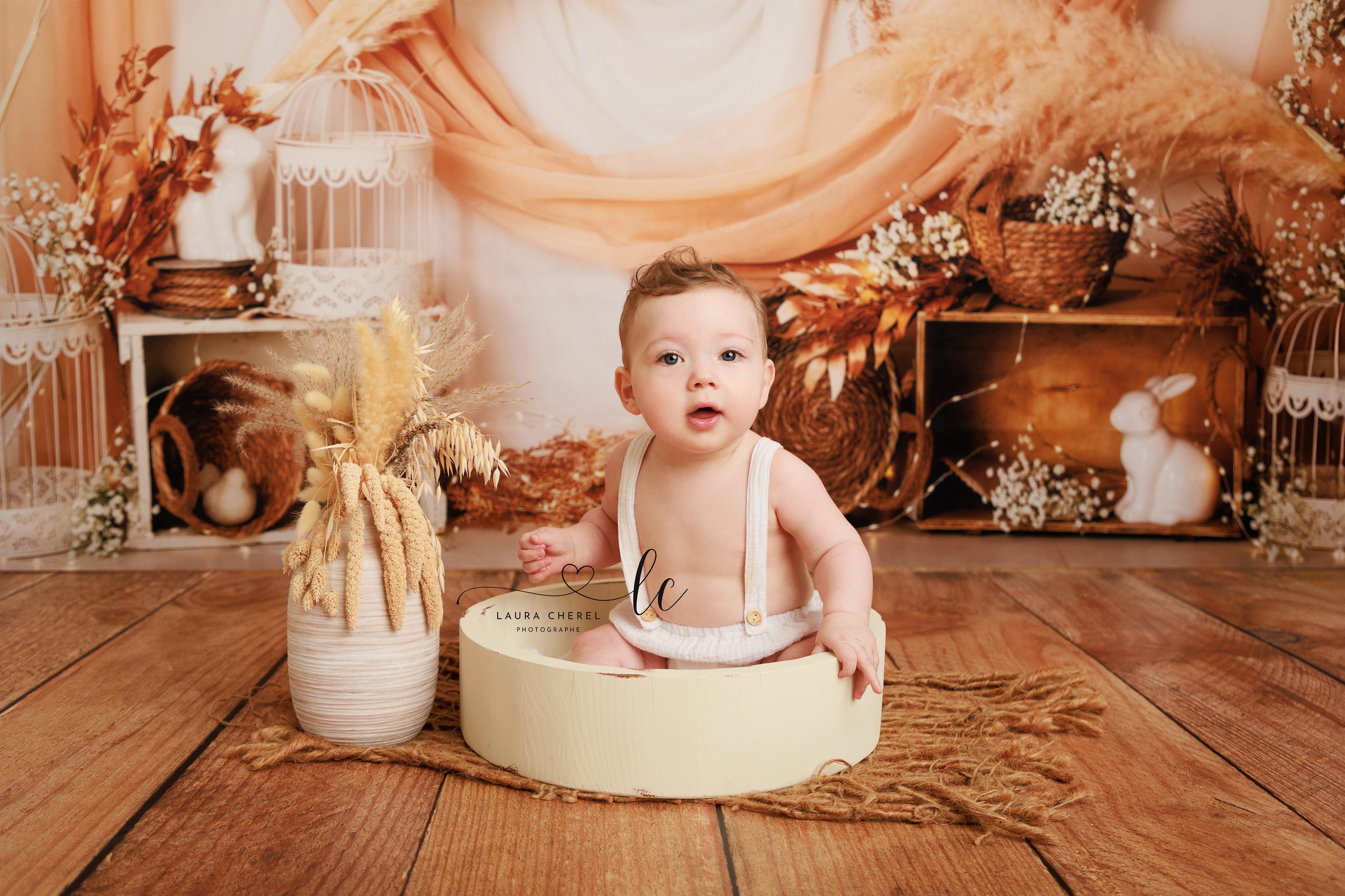 Pour cette séance, bébé doit être capable de tenir assis seul, ce qui marque une étape importante dans son développement.